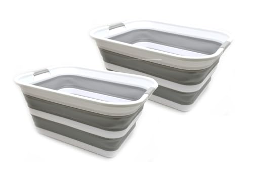 SAMMART 42L Collapsible Plastic Laundry Basket - Foldable Pop Up Storage Container/Organizer - Portable Washing Tub - Space Saving Hamper/Basket (Grey, 2)