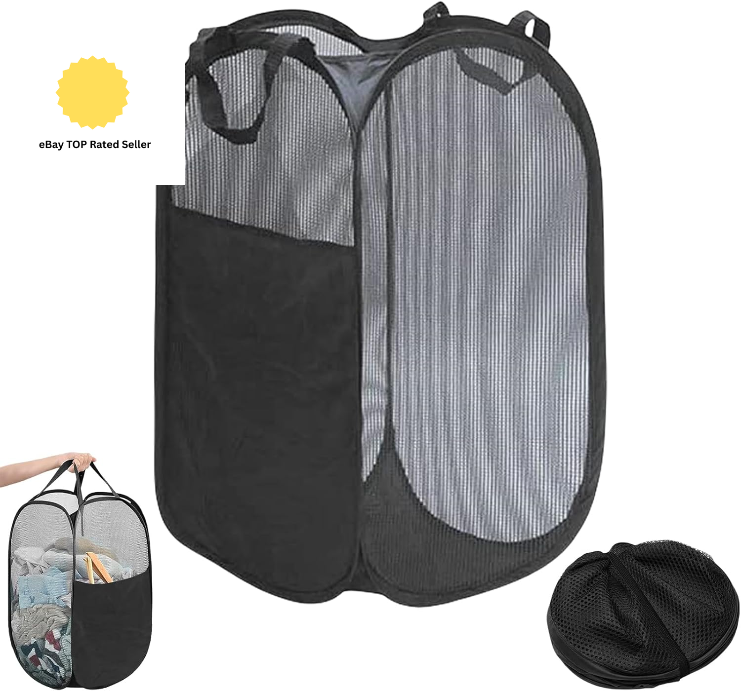 Foldable Pop Up Laundry Bag Bin Basket Mesh Washing Hamper Clothes Storage Bags