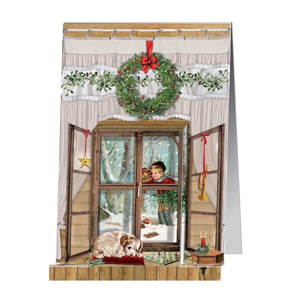 Wreath Window 3 d Christmas Window Advent Calendar Card Pop up.