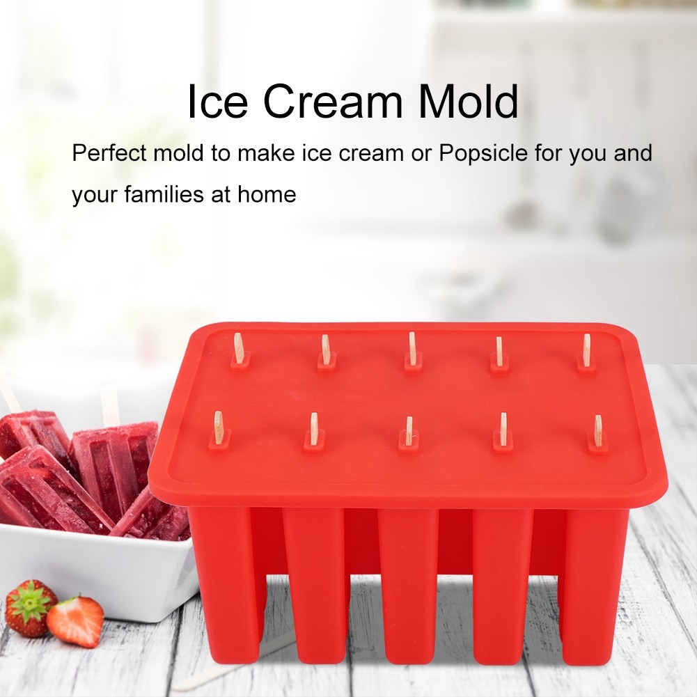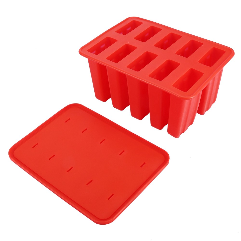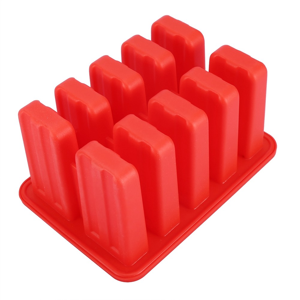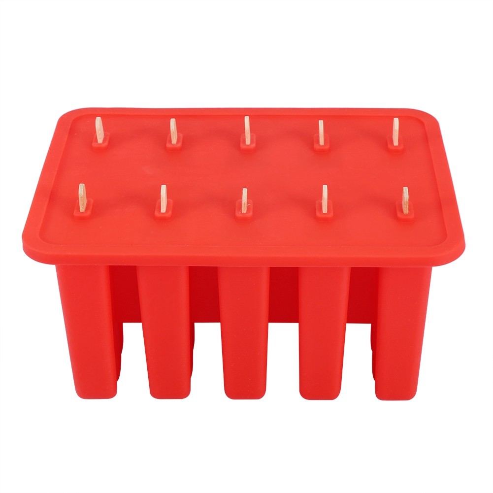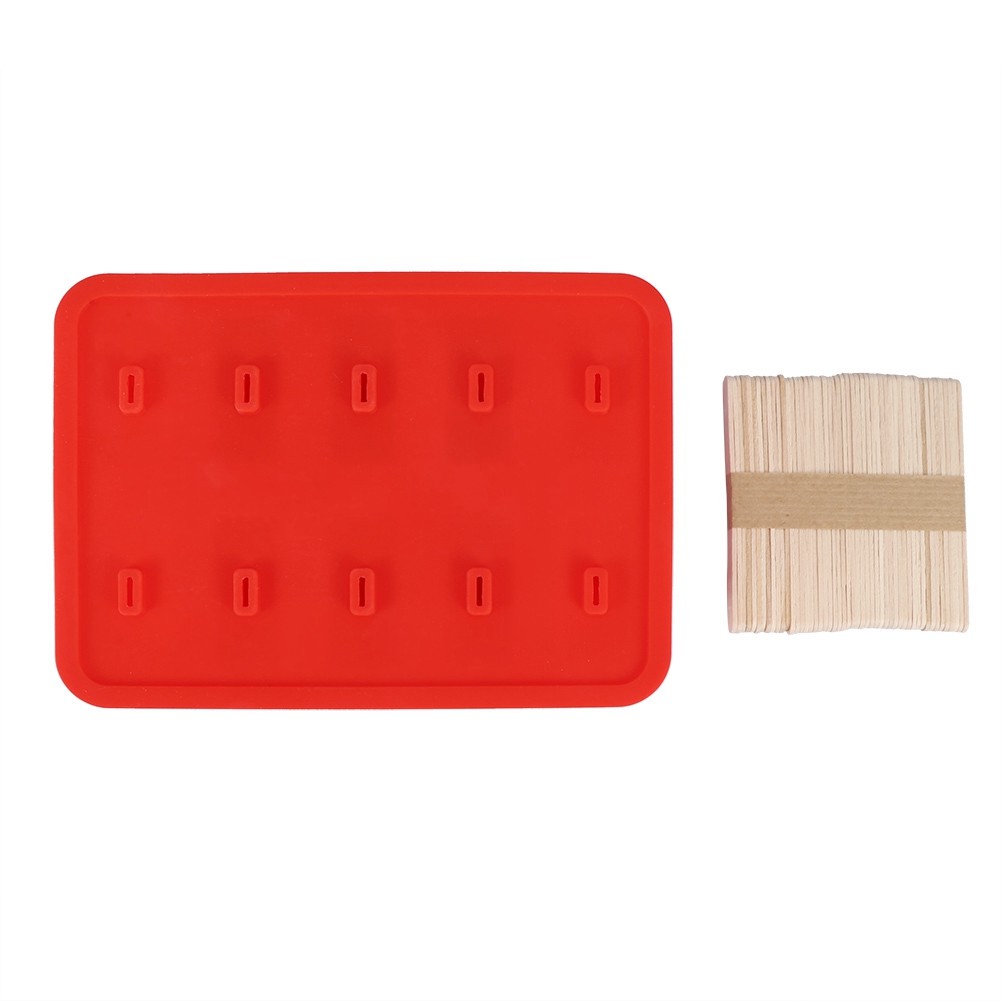 10 Cells Silica Gel Ice Cream Mold Popsicle Maker With 50 Sticks (Red)