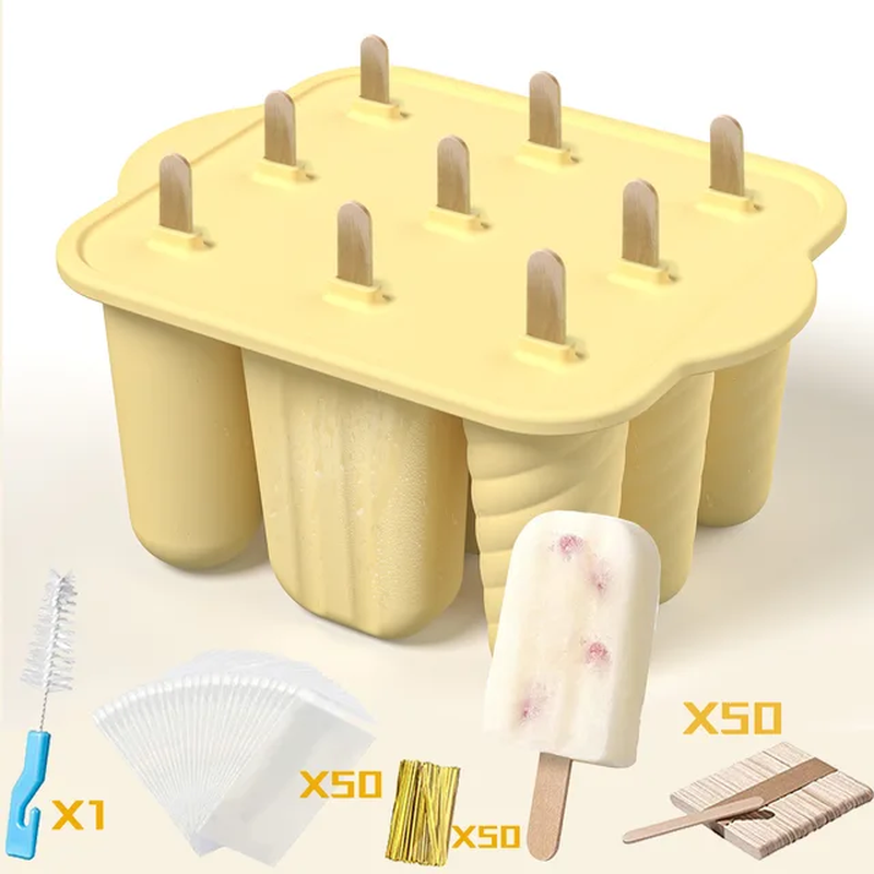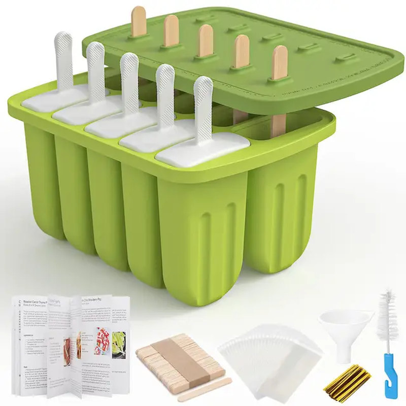 10 Cells Silica Gel Ice Cream Mold Popsicle Maker With 50 Sticks