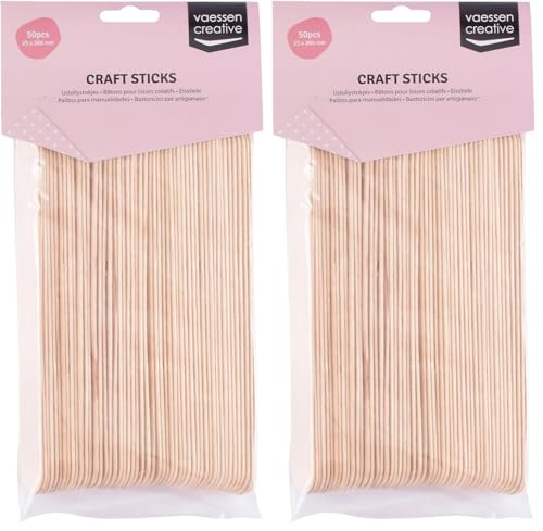Vaessen Creative Wooden Popsicle Sticks, 50 Pieces, 2,5 x 20 cm, Create 3D Artwork, Arts and Crafts for Kids, Home Décor and More, Natural Birch (Pack of 2)
