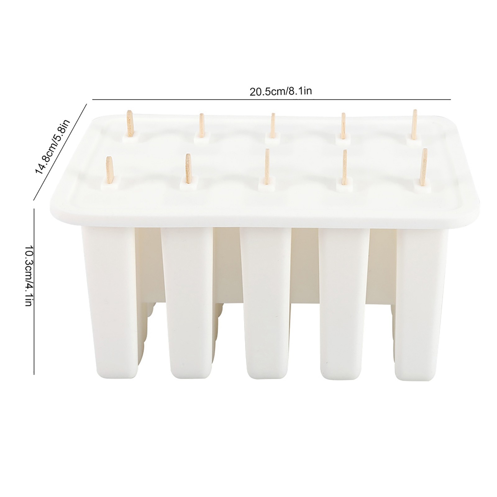 ㄧ10 Cells Silica Gel Ice Cream Mold Popsicle Maker With 50 Sticks White