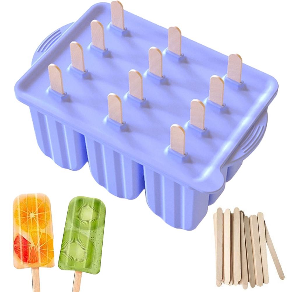 12-Cavity Blue Silicone Popsicle Mold With Lids & 50 Sticks