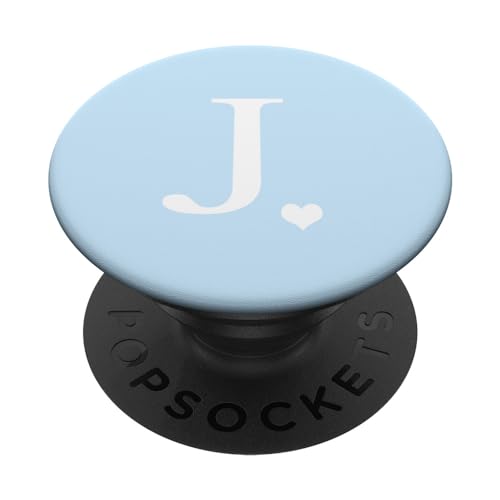 White Initial Letter J Heart Monogram On Pastel Light Blue PopSockets PopGrip: Swappable Grip for Phones & Tablets PopSockets Adhesive PopGrip