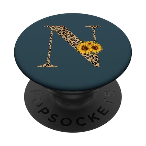 Leopard Animal Print Monogram Letter N Pacific Blue PopSockets PopGrip: Swappable Grip for Phones & Tablets PopSockets Adhesive PopGrip