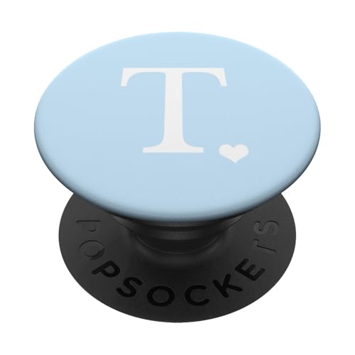 PopSockets White Initial Letter T Heart Monogram On Pastel Light Blue PopSockets PopGrip: Swappable Grip for Phones & Tablets