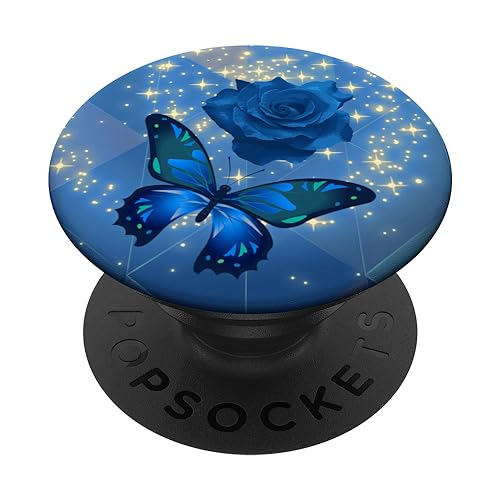 Rose Butterfly Flower Cell Phone Button Pop Up Holder Blue PopSockets Grip and Stand for Phones and Tablets PopSockets Adhesive PopGrip