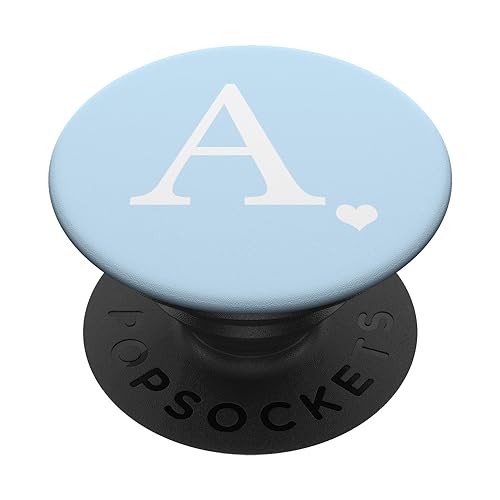 White Initial Letter A Heart Monogram On Pastel Light Blue PopSockets PopGrip: Swappable Grip for Phones & Tablets PopSockets Adhesive PopGrip