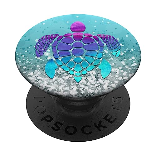 PopSockets Purple Turquoise Turtle Phone Grip Silver light blue PopSockets Swappable PopGrip