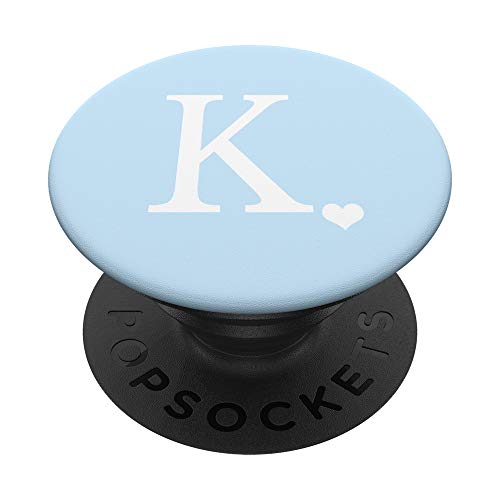 White Initial Letter K Heart Monogram On Pastel Light Blue PopSockets PopGrip: Swappable Grip for Phones & Tablets