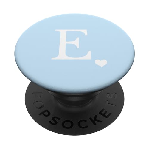 PopSockets White Initial Letter E Heart Monogram On Pastel Light Blue PopSockets PopGrip: Swappable Grip for Phones & Tablets