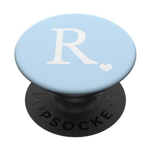 White Initial Letter R Heart Monogram On Pastel Light Blue PopSockets PopGrip: Swappable Grip for Phones & Tablets PopSockets Adhesive PopGrip