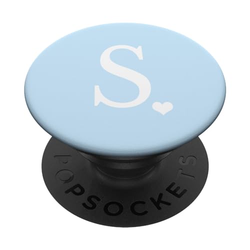 PopSockets White Initial Letter S Heart Monogram On Pastel Light Blue PopSockets PopGrip: Swappable Grip for Phones & Tablets