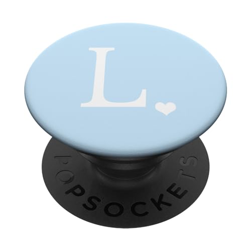PopSockets White Initial Letter L Heart Monogram On Pastel Light Blue PopSockets PopGrip: Swappable Grip for Phones & Tablets