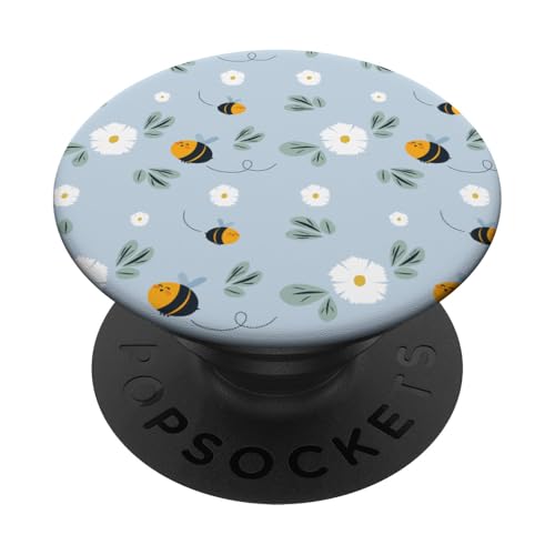 Beautiful Honey bees& Daisy Flowers On Blue PopSockets Adhesive PopGrip