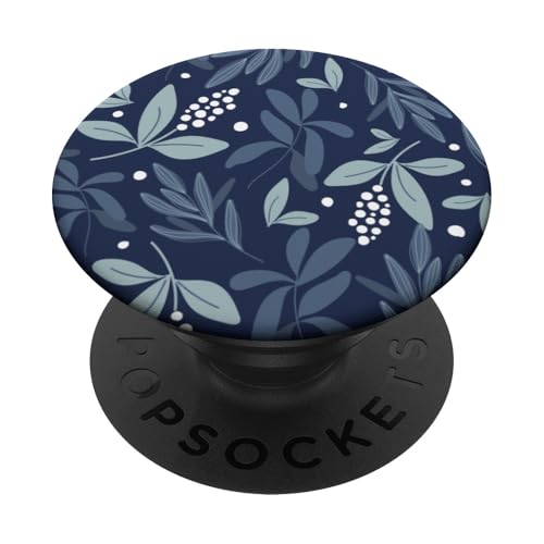 PopSockets Navy Blue Botanical Foliage & White Berry Floral Bud Pattern PopSockets PopGrip: Swappable Grip for Phones & Tablets