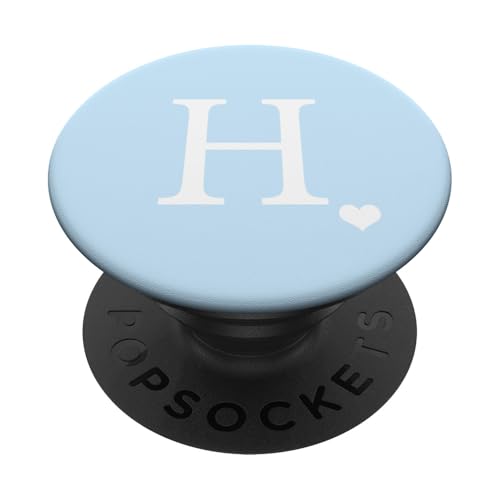 White Initial Letter H Heart Monogram On Pastel Light Blue PopSockets PopGrip: Swappable Grip for Phones & Tablets PopSockets Adhesive PopGrip
