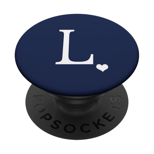 PopSockets White Initial Letter L heart Monogram on Navy Blue PopSockets PopGrip: Swappable Grip for Phones & Tablets