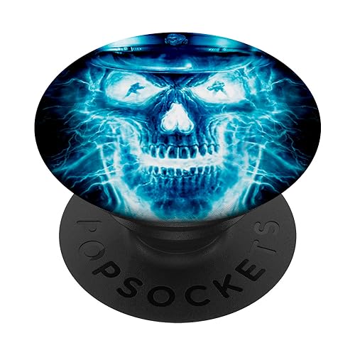 PopSockets Flaming Blue Skull - Fire Skull For Boys Men PopSockets PopGrip: Swappable Grip for Phones & Tablets