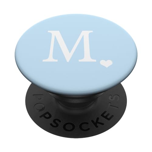 PopSockets White Initial Letter M Heart Monogram On Pastel Light Blue PopSockets PopGrip: Swappable Grip for Phones & Tablets