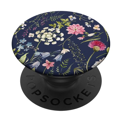 PopSockets Navy Blue Botanical Garden Pattern Pink White Blue Flowers PopSockets PopGrip: Swappable Grip for Phones & Tablets