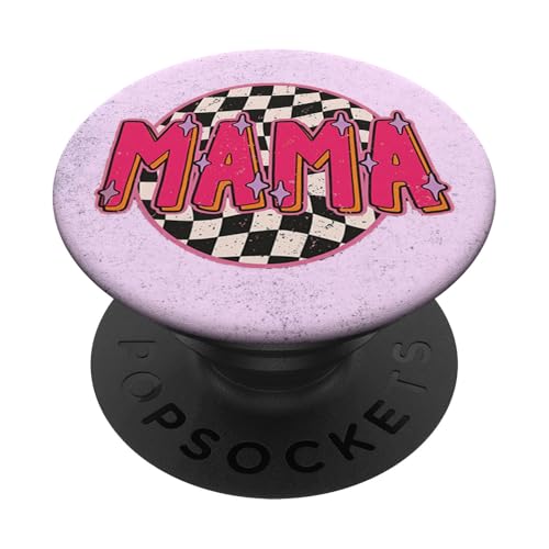 Mama Retro Checkered Pattern Pink Sparkle Aesthetic PopSockets Adhesive PopGrip