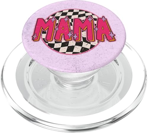 Mama Retro Checkered Pattern Pink Sparkle Aesthetic PopSockets PopGrip for MagSafe