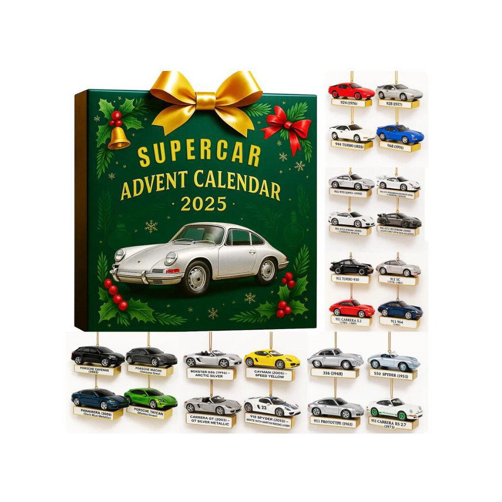 (Porsche, 26*18*3CM) Perfect Christmas â Cat Lover Advent Calendar Blind Box Christmas Tree Decoration Acrylic Pendant