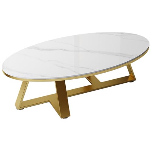 White Marble Coffee Table - Elegant Oval Design With Metal Frame Stylish And Unique Center For Small Spaces Sintered Stone Top Capture The Essence (Size:90cm(35inch),Color:Gold Leg