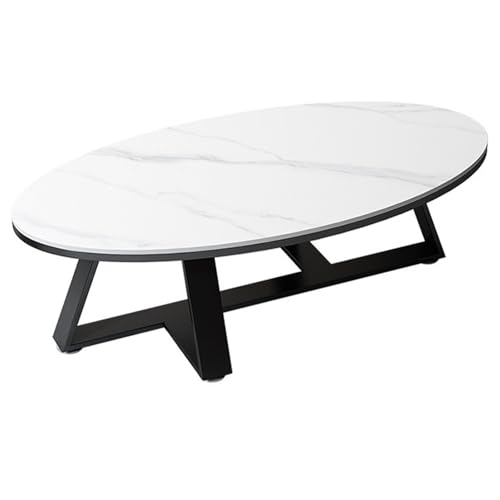 White Marble Coffee Table - Elegant Oval Design With Metal Frame Stylish And Unique Center For Small Spaces Sintered Stone Top Capture The Essence(Size:90cm(35inch),Color:Black Leg