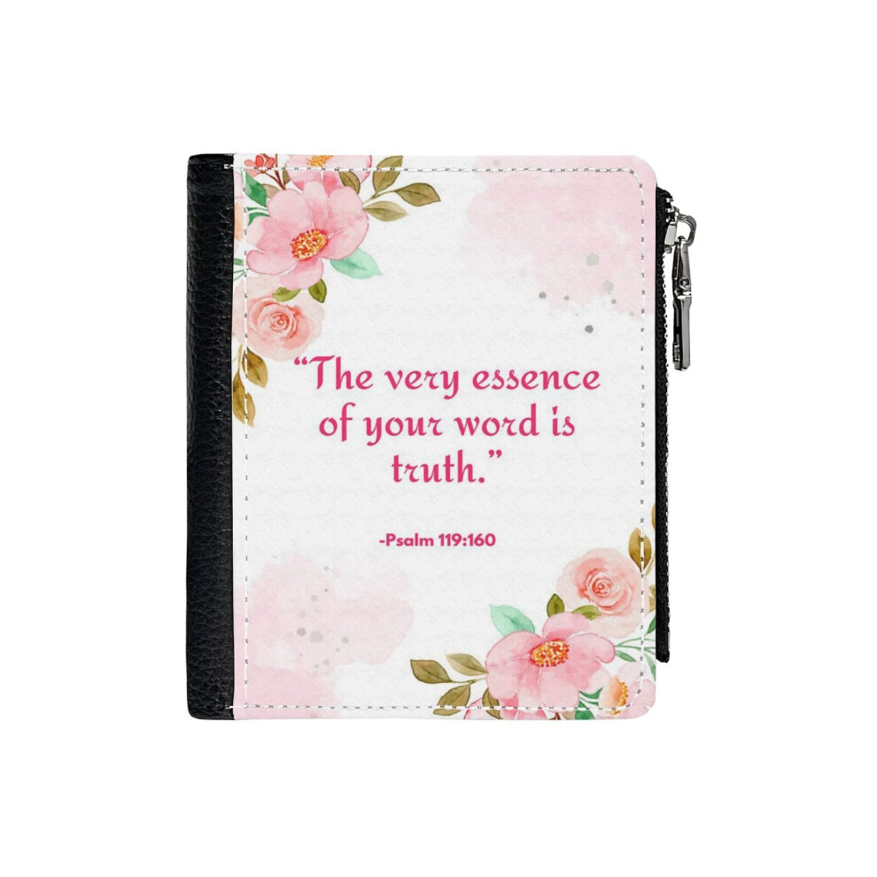 (The Very Essence Of Your Word Is Truth,_466) PU Wallet Compact Bifold with Zipper & Multiple Card Coins Slots Black Stylish Durable Graphic Design Pr