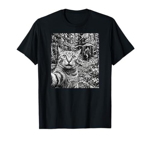 Cat Selfie in The Woods with Bigfoot Leaving A Porta Potty T-Shirt