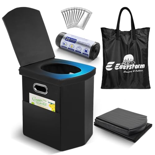E EASTSTORM Portable Camping Toilet, Home-Height 16.5" Adult Travel Toilet with Soft Seat – Foldable Outdoor Porta Potty for Camping, Festivals, Fishing, Emergencies, Car Trips & Guest Bedroom Use