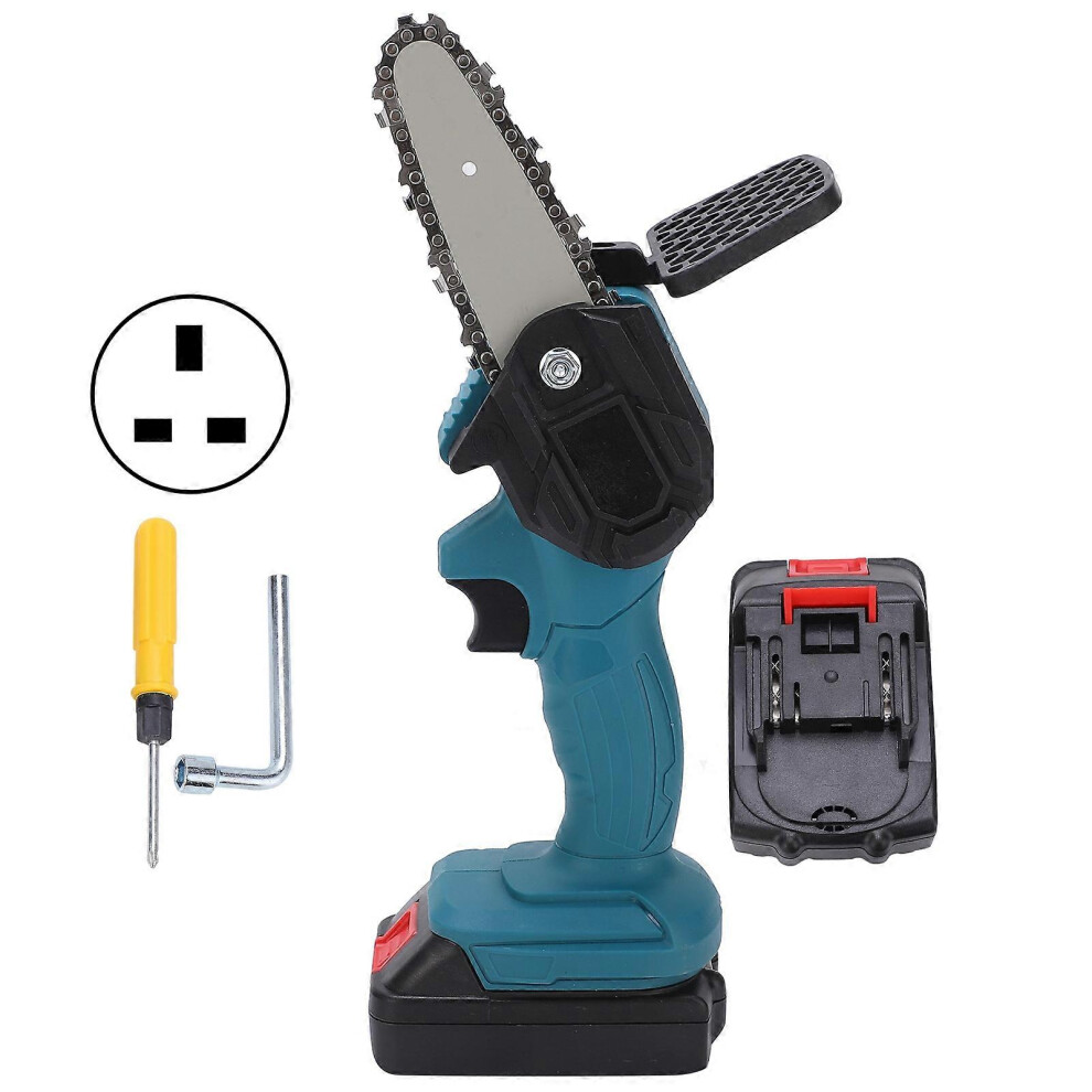 (As show, One size) Mini Hand Saw 4in Portable Electronic 1Handed Trimming Tool Chainsaw with Brush AC100240VBlue UK Plug