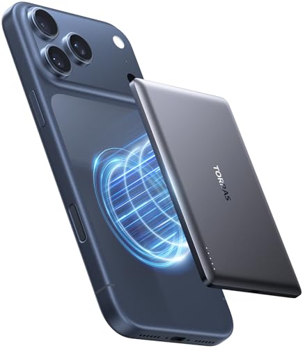 TORRAS MiniMag Ultra Slim Power Bank for MagSafe iPhone17, Fast Charging 5000mAh Magnetic Portable Charger, Wireless Battery Pack with USB-C Cable for iPhone 17 Air/Pro Max/16/15/14/13/12, Gray Titan.