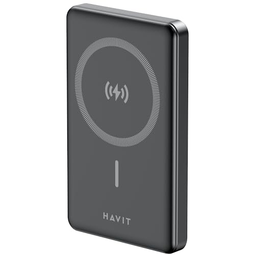 HAVIT Magsafe Fast Charging Magnetic Power Bank - 10000mAh 15w Portable Battery Charger Pack Compatible with IPhone, Thin & Portable Wireless Mobile Phone Powerbank Charger with Magnet - Black