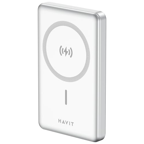 HAVIT Magsafe Fast Charging Magnetic Power Bank - 10000mAh 15w Portable Battery Charger Pack Compatible with IPhone, Thin & Portable Wireless Mobile Phone Powerbank Charger with Magnet - Silver