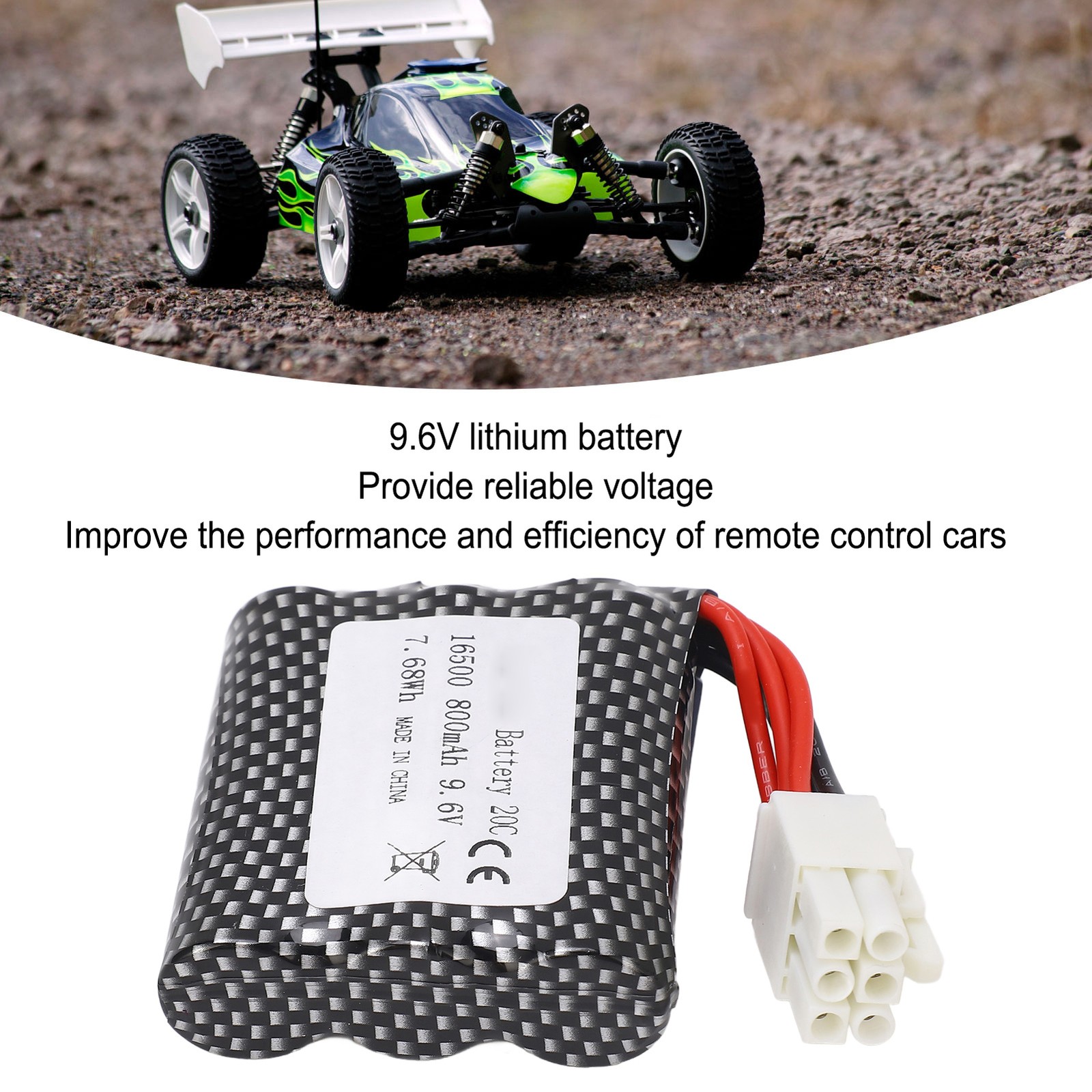 9.6V RC Car Battery, 800mAh High Rate Portable Lithium Battery Pack for S911 S912 9115 9116 Remote Control Car