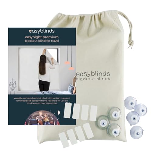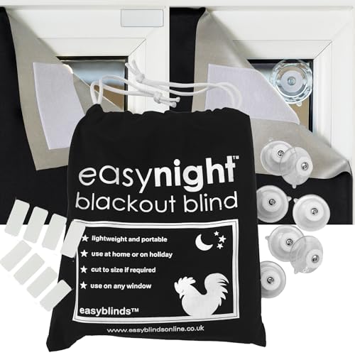 Easynight Portable Travel Blackout Blind, 100% Light Blocking Fabric, Regular, Fit Any Size/Shape Up To 150x145cm, Made to Measure Service Available, No Drill, Easy Use Temporary Permanent Anywhere