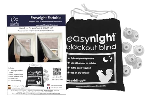 Easynight Portable Travel Blackout Blind, 100% Light Blocking Fabric, Small, Fit Any Size/Shape Up To 100x145cm, Made to Measure Service Available, No Drill, Easy Use Temporary Permanent Anywhere