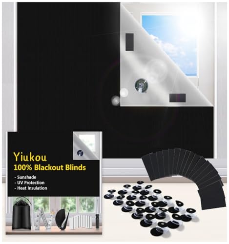 Yiukou Ultimate 100% Blackout Blind 200x145CM |420D Oxford Fabric|Portable Blackout Blind Stick on Any Size/Shape Window |18 Suction Cups,18 Stainless Films|Temporary Blackout Curtain|Easy to Stick On