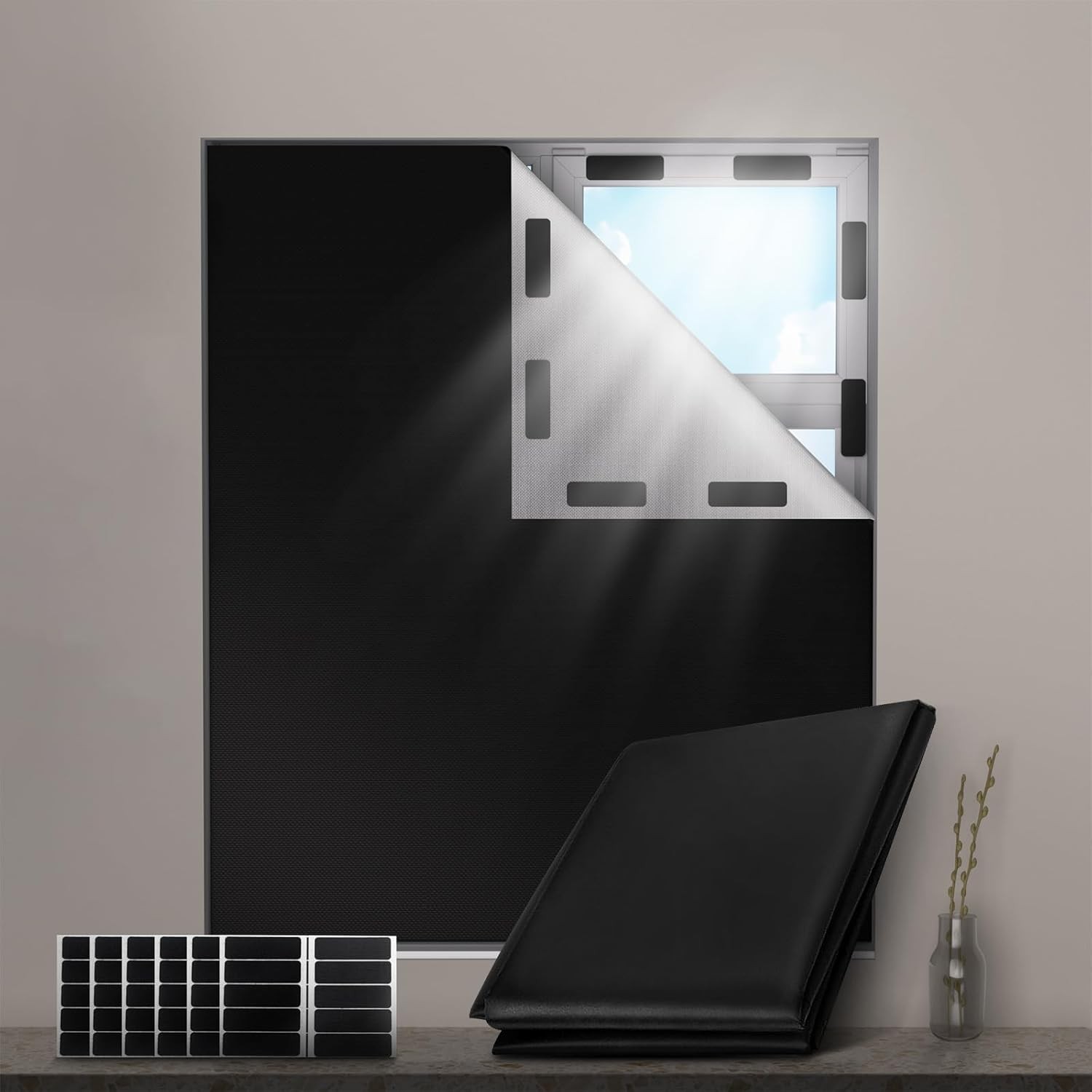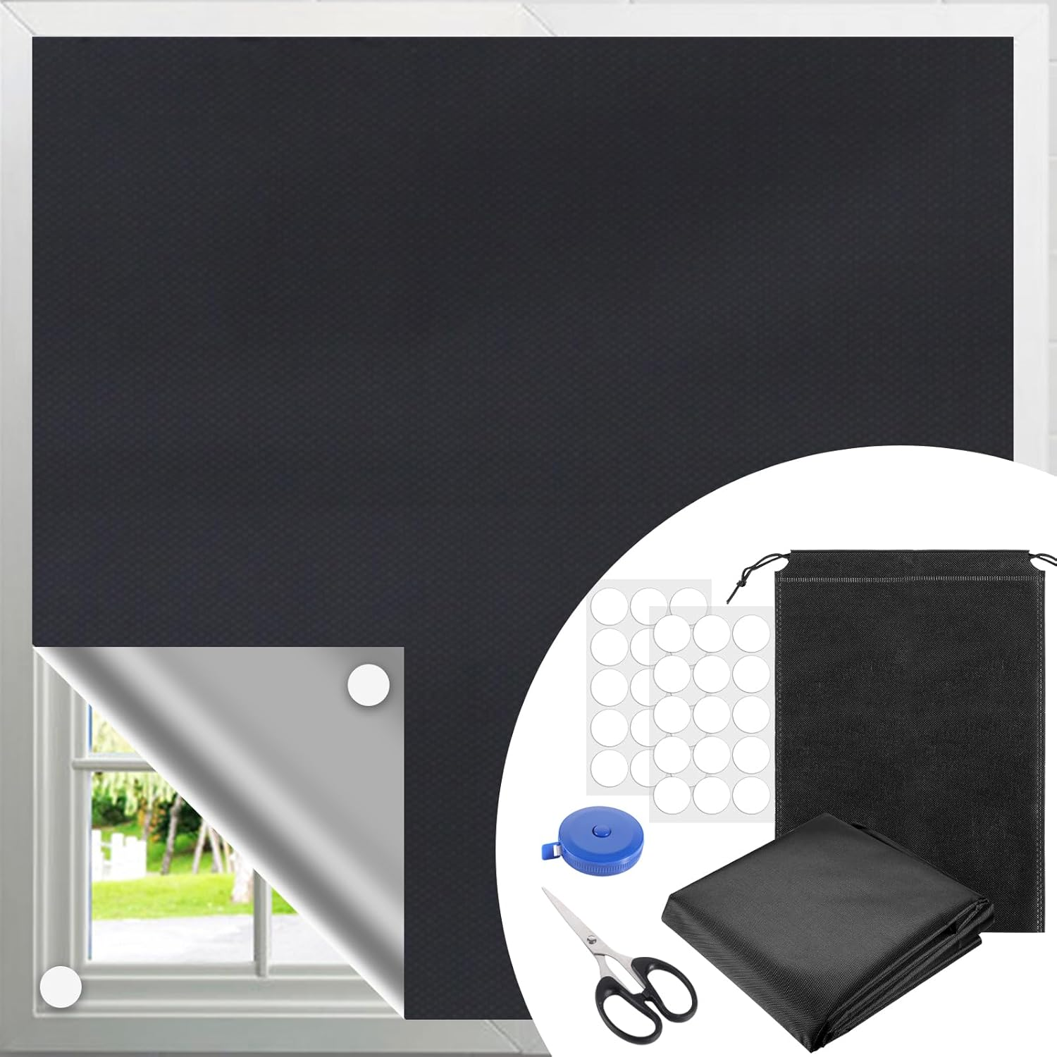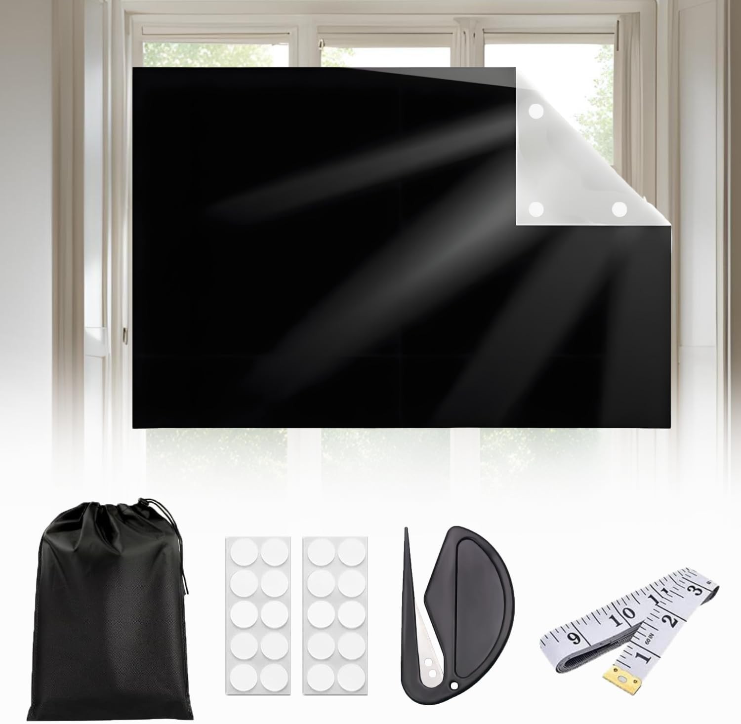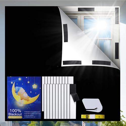 100% Blackout Blind,Total Blackout Window Film Fits 200X145CM Stick on Blackout Blinds for Windows Fits Any Size Shape Window.Portable Window Blackout Curtains with 30X Nano Tape
