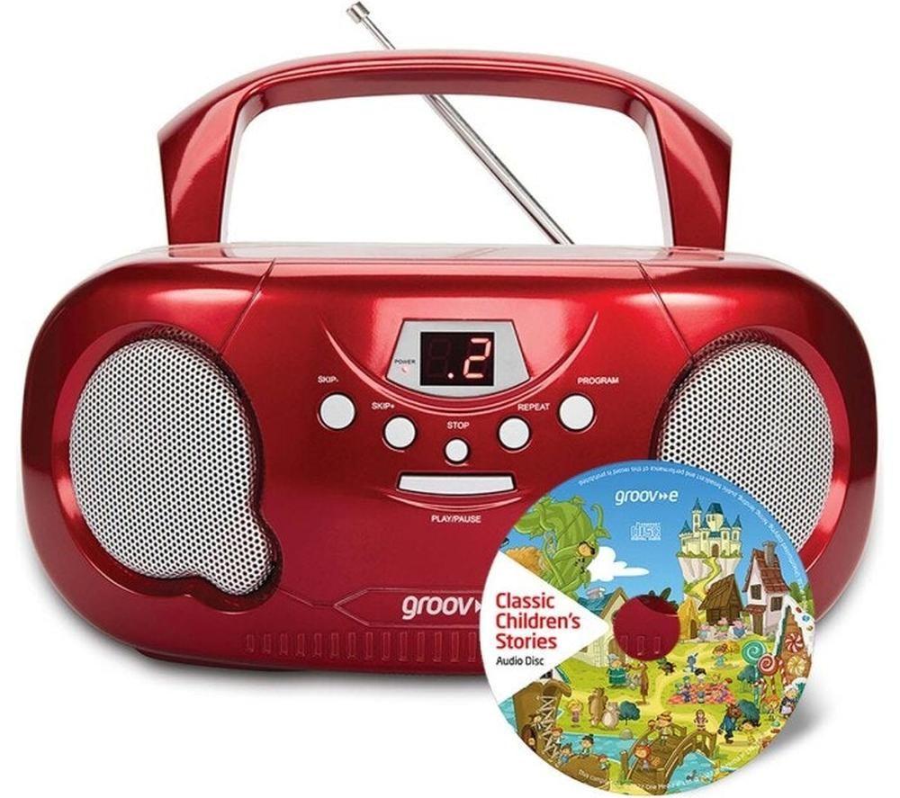 GROOV-E GVPS733CD10/RD Portable FM/AM Boombox & Children's Stories CD - Red, Red