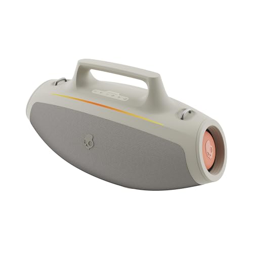 Skullcandy Barrel Wireless Bluetooth Portable Boombox Party Speaker, IPX5 Water-Resistant, 12 Hour Battery, True Wireless Stereo with LED Light Show and Carrying Strap - Bone/Orange