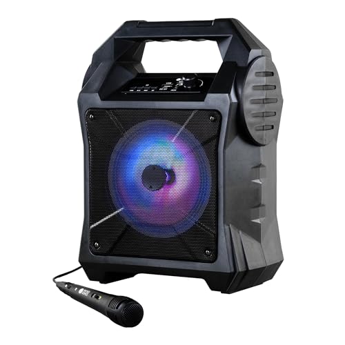 WICKED GIZMOS Portable Karaoke Boombox Machine with Amplifying Speaker and LED Lighting, Microphone, Bluetooth and AUX Inputs, Party Entertainment