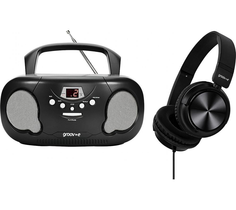 GROOV-E GVPS733HP/BK Portable FM/AM Boombox & Stereo Headphone - Black, Black