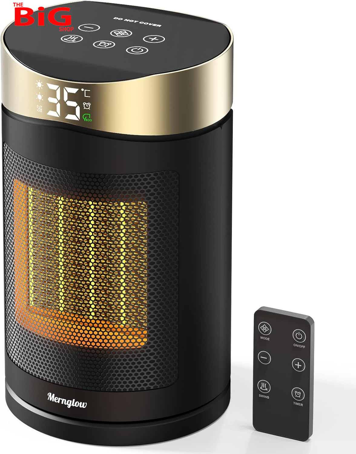(UK Plug, Remote Control) 1000W Smart Portable PTC Ceramic Heater with Remote, Timer, Night Light & Overheat Protection