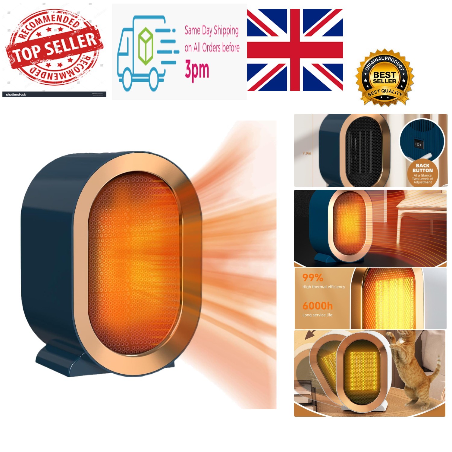 Desktop Mini Electric Heater 1200W UK Plug in Portable Ceramic Fan Heater