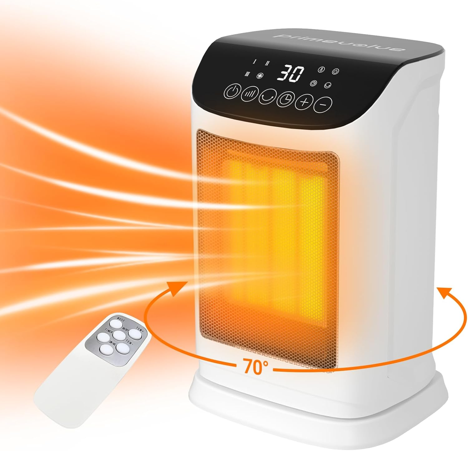 Primevolve 1800W Electric Heater, Portable Ceramic Space Heater with ECO Mode, Small Energy Efficient Room Heater,70°Oscillation, Remote Control, Quiet Fan Heater, Overheat & Tipping Protection